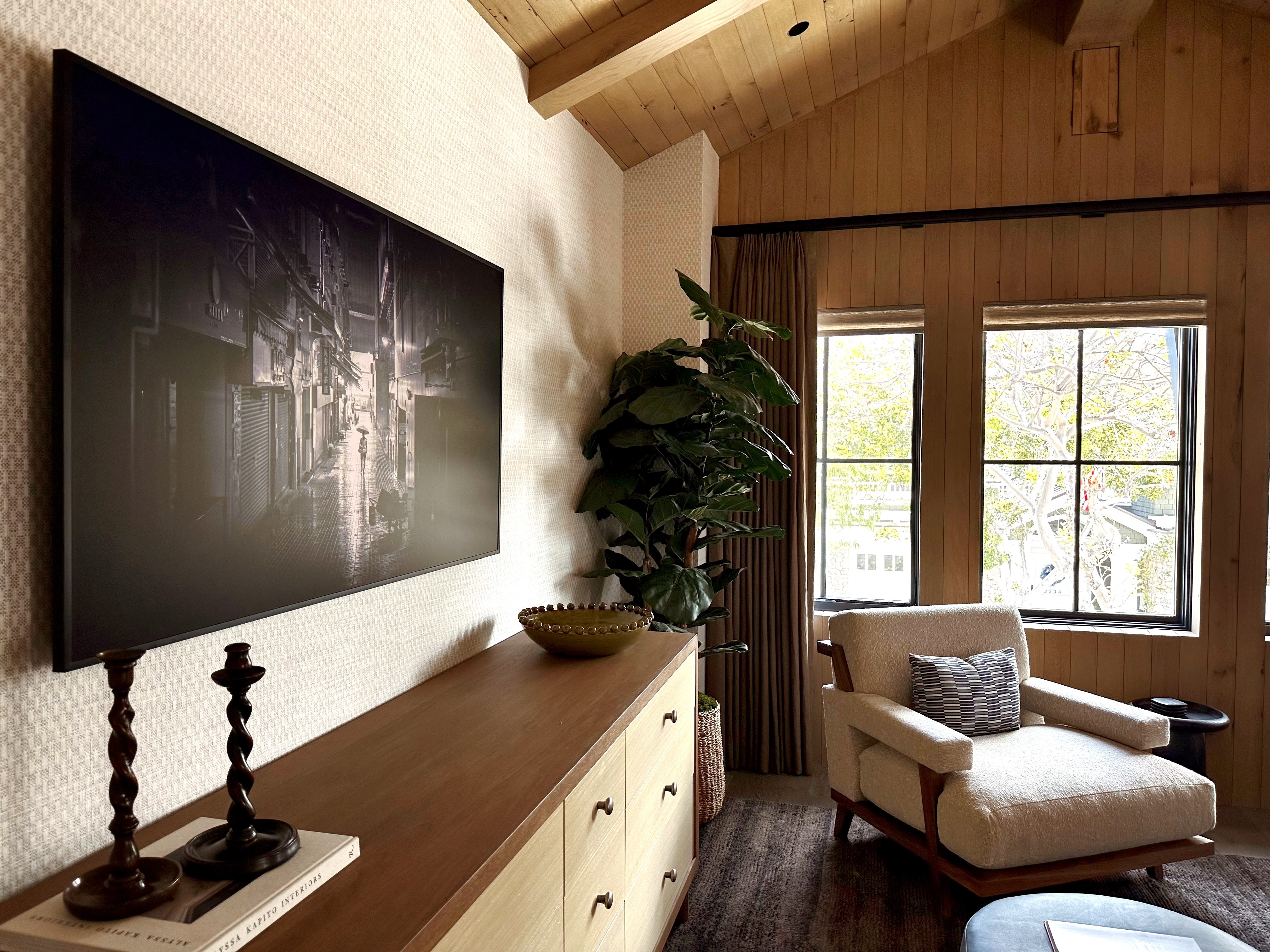 We love adding Samsung Frame TVs because no matter the lighting in the room, they always deliver stunning picture quality.