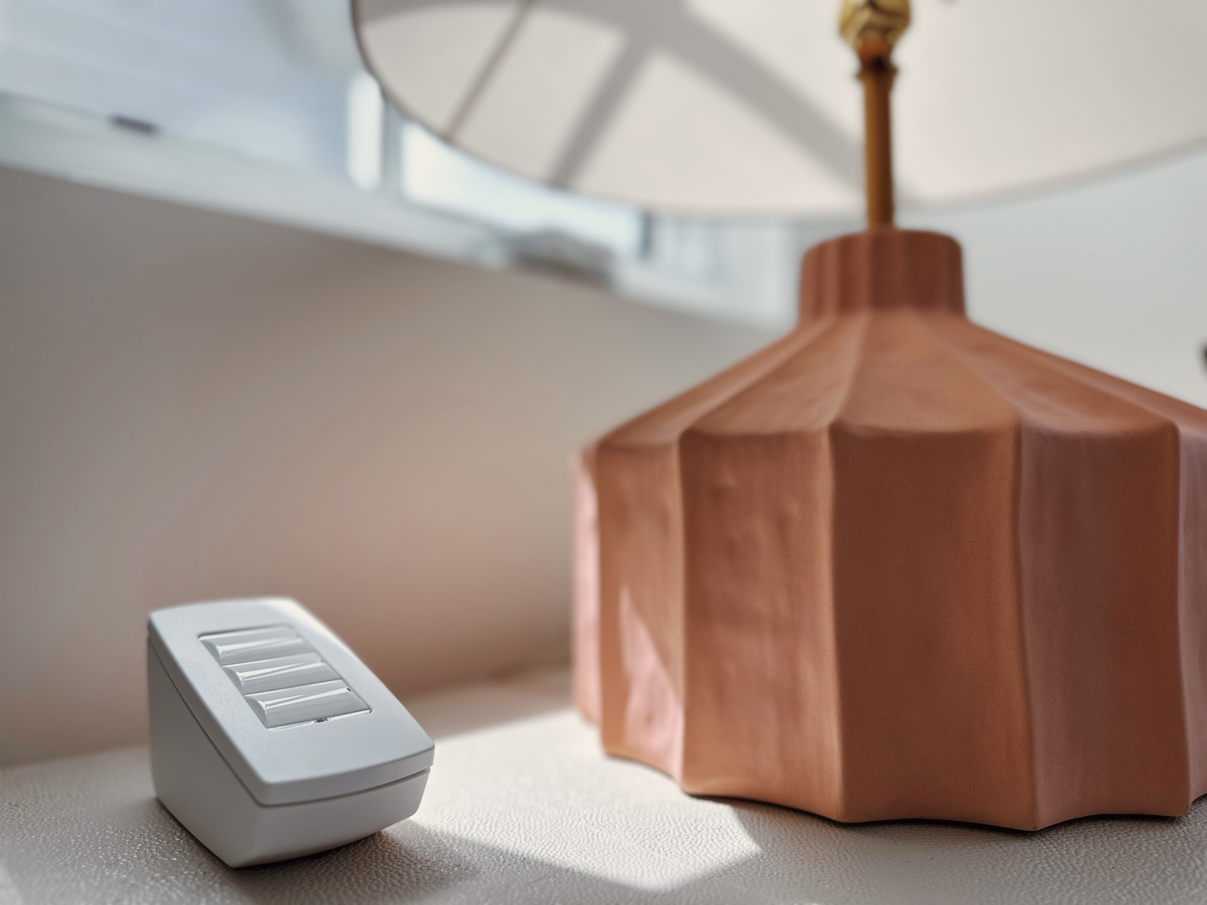 Each room includes a bedside remote that controls the shades and music, giving the client easy and convenient access right from the nightstand.