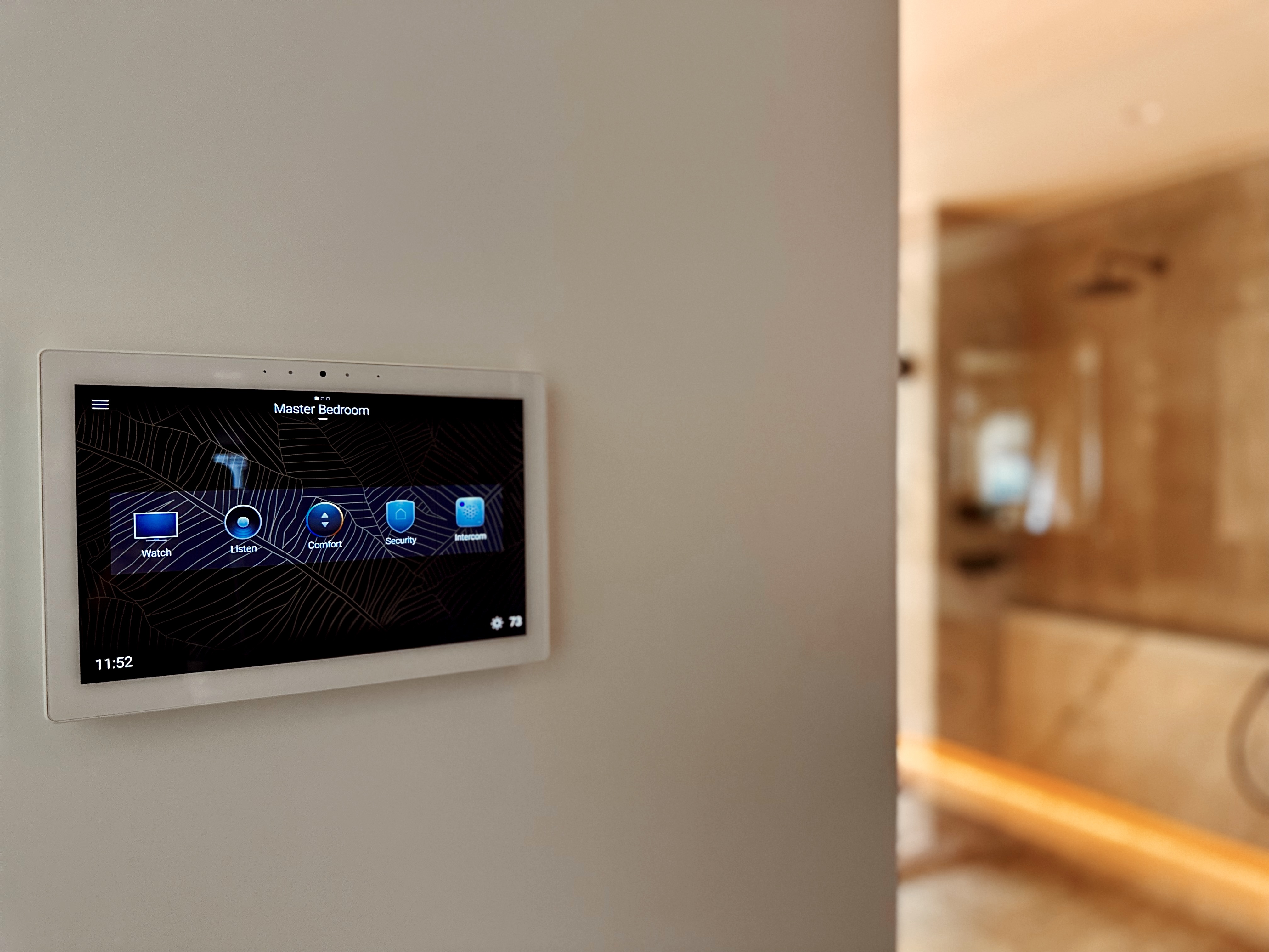 Control4 touchscreens are placed throughout the home, giving the client quick and easy access to every system from anywhere in the house.