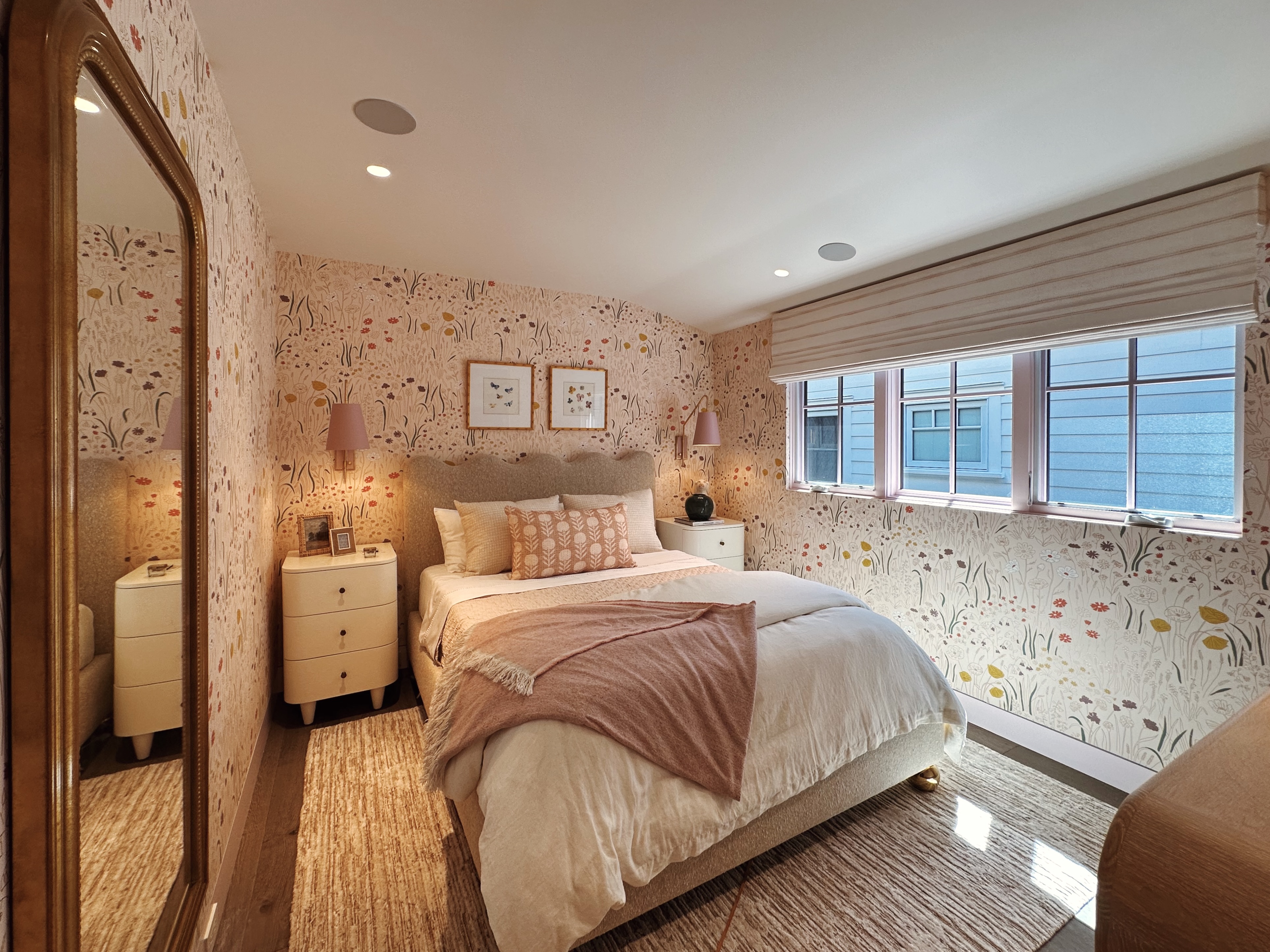 The Samsung Frame TV adds a slim, modern look that fits perfectly with the bedroom’s design. Its sleek profile makes it feel more like a piece of art than a TV, blending style and function.