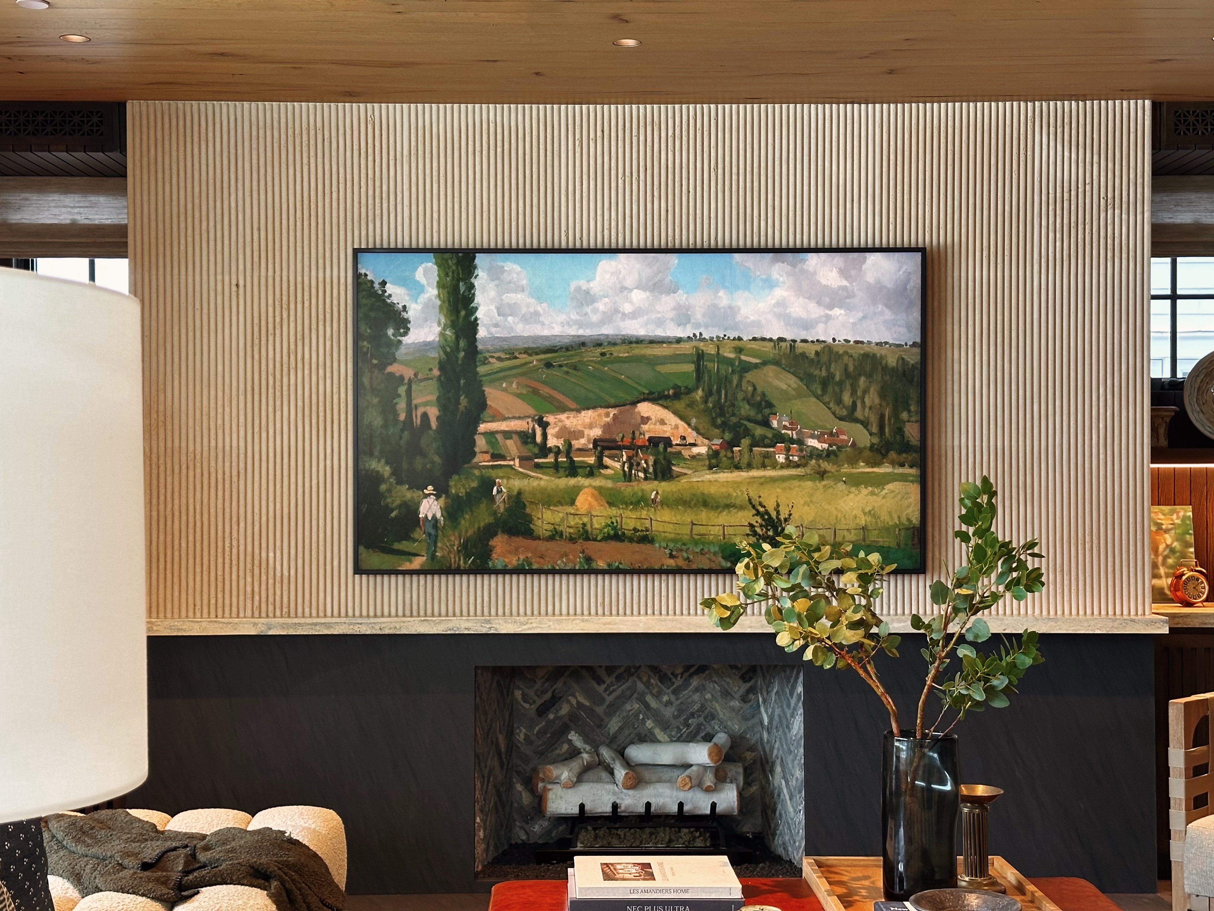 Beyond making every Samsung Frame TV blend beautifully into the space, we also installed Origin Acoustics in-ceiling speakers. These not only deliver incredible sound but were carefully color-matched to the ceiling for a flawless, integrated look.