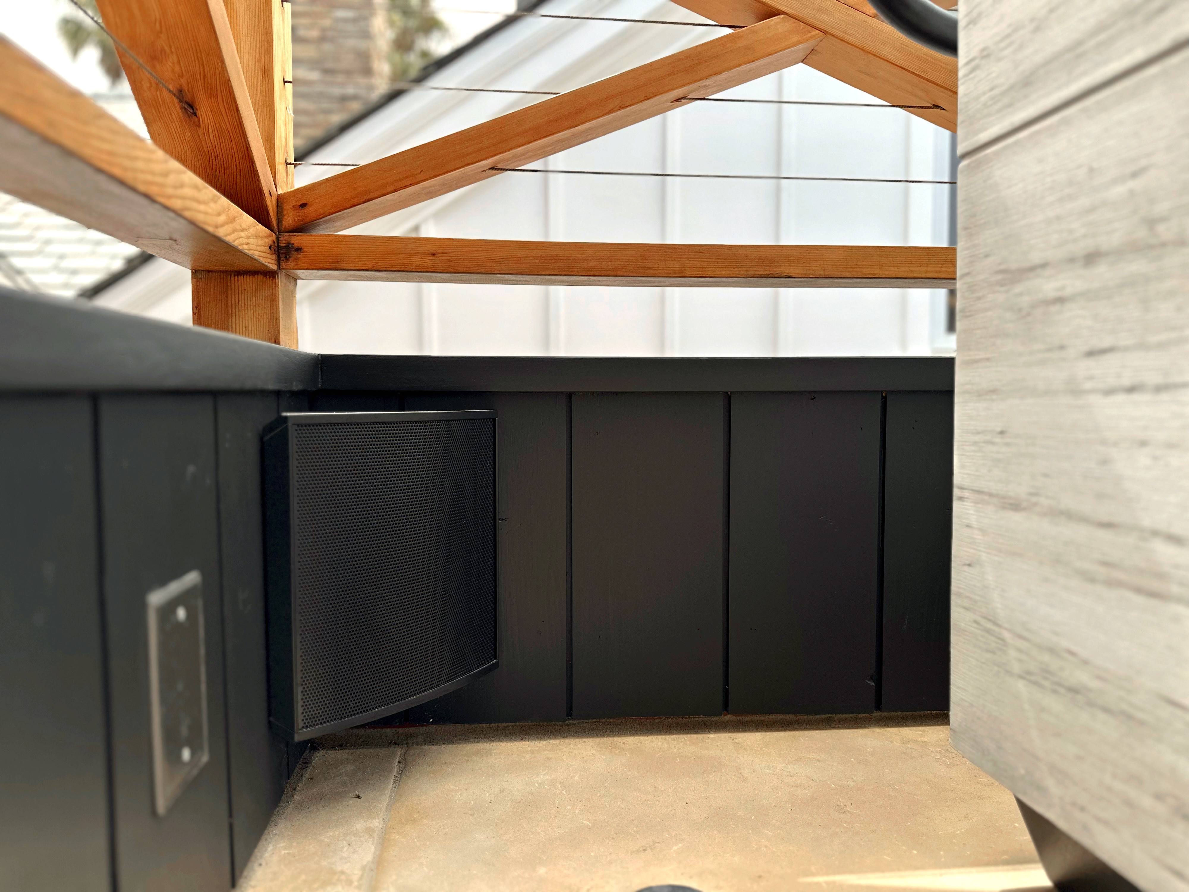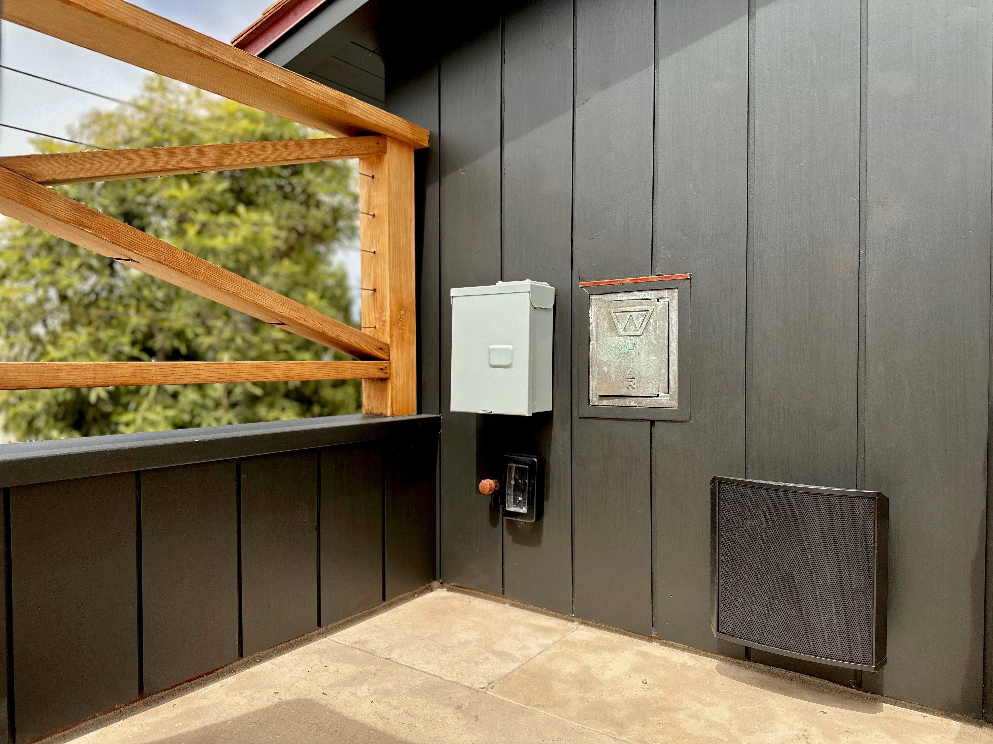 Upstairs on the outdoor deck, we installed two Coastal Source outdoor speakers.