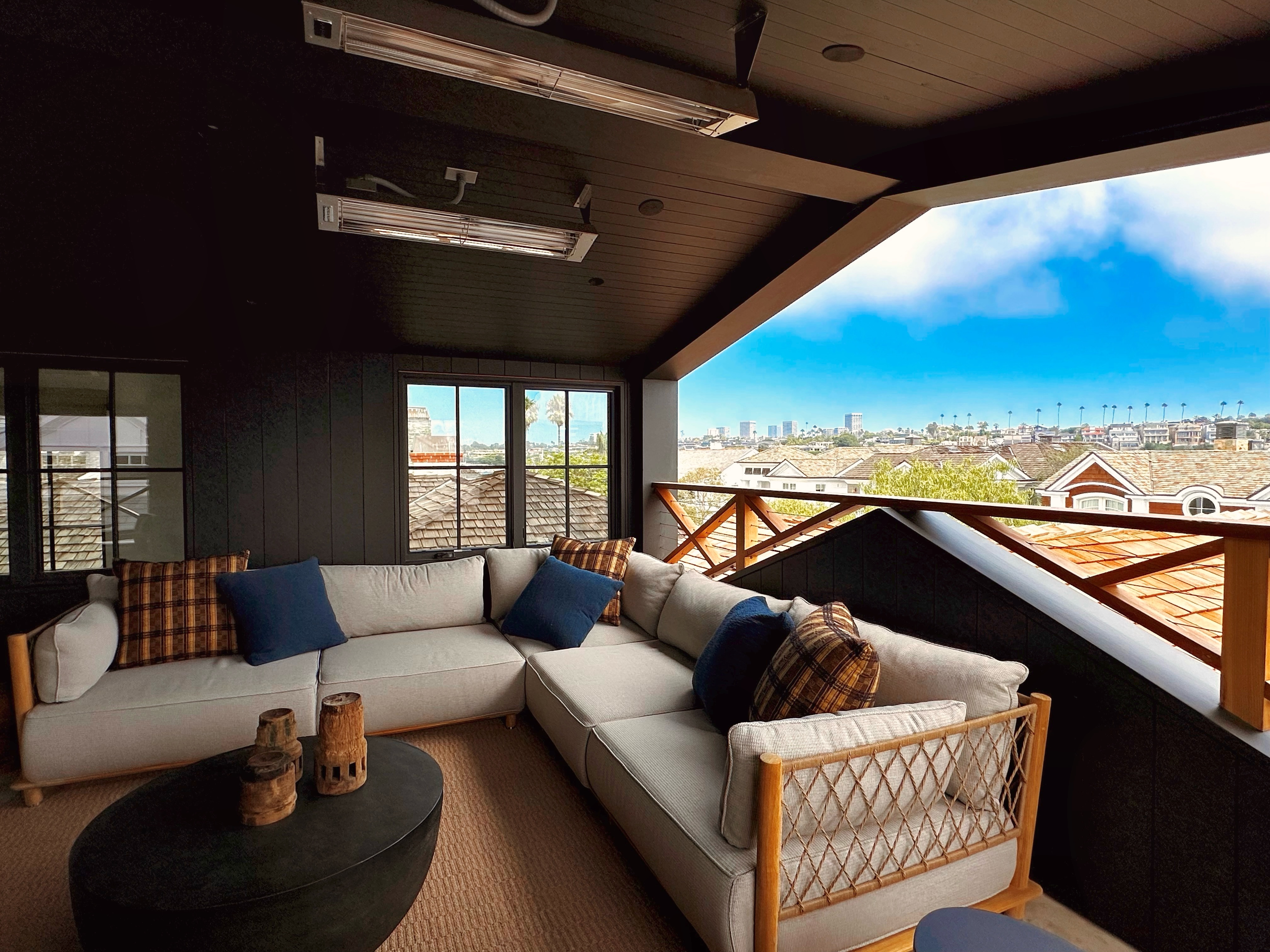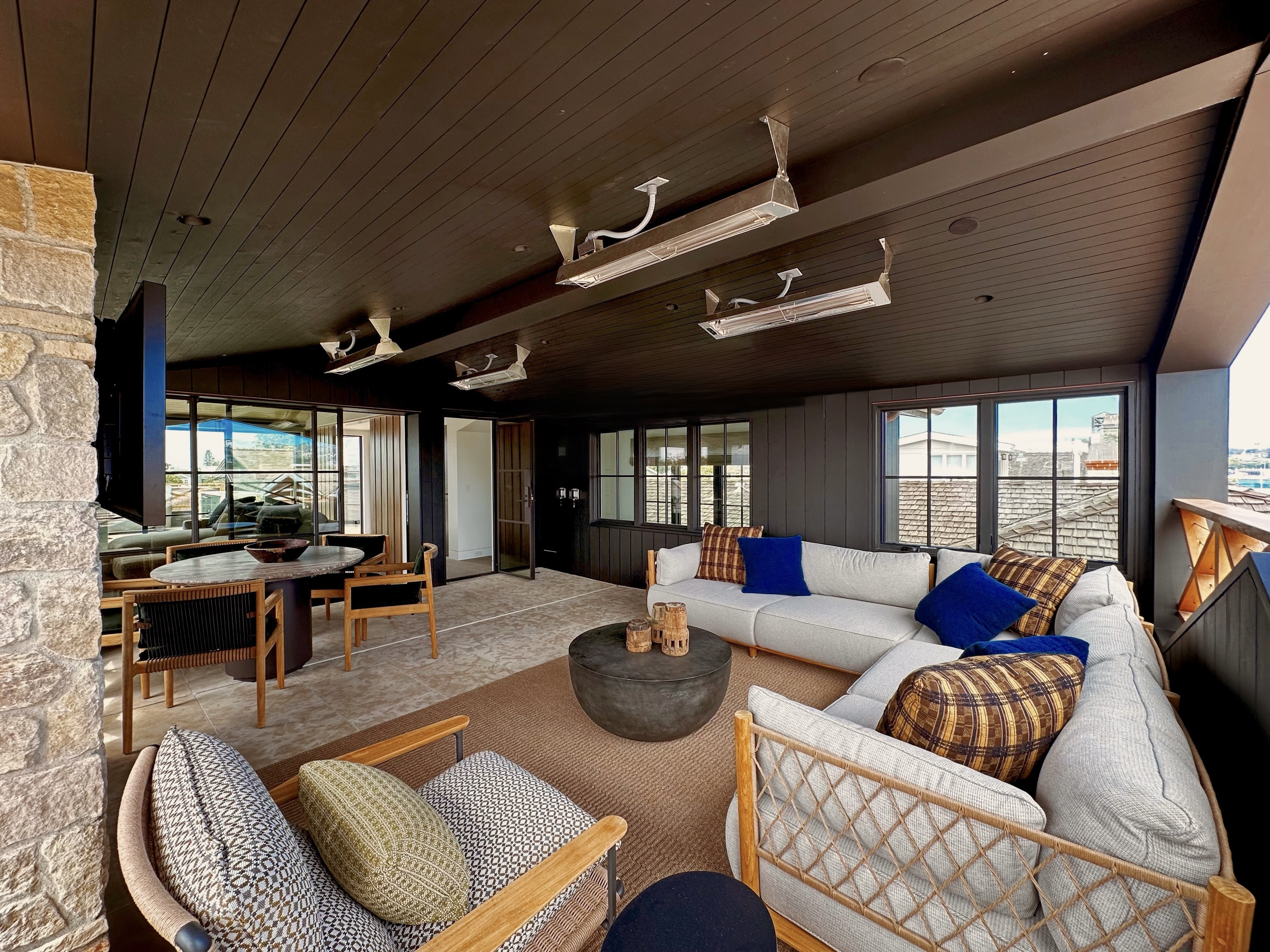 Upstairs in the covered deck area, we added Origin Acoustics in-ceiling speakers, carefully color-matched to the ceiling for a clean, polished look. They provide rich, balanced sound that makes the space perfect for movie nights or relaxing evenings outdoors.